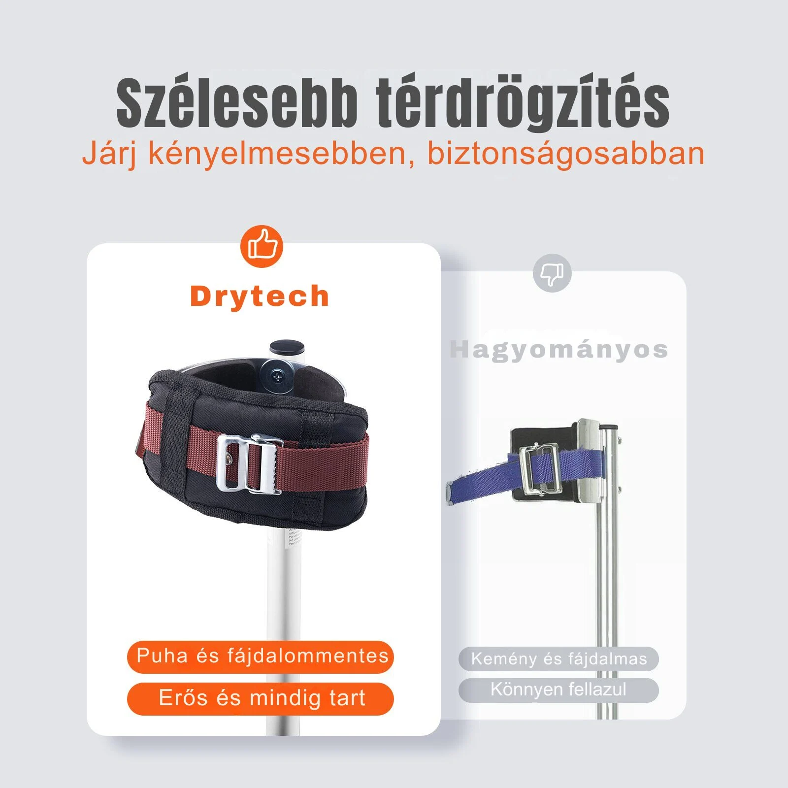 - Stabilitás: Fém csattos hevederek és gyorskioldó bokapántok biztosítják a stabil rögzítést.