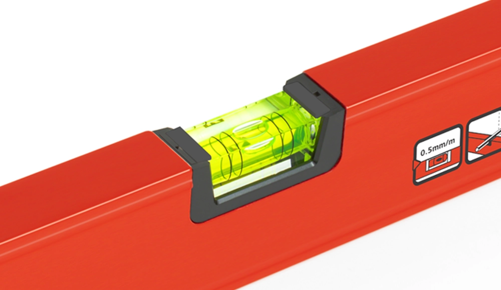 - Robusztus Felépítés: A vízmérték strapabíró alumínium házzal rendelkezik, amely hosszú élettartamot biztosít. A gumivégzárók kiváló ütéselnyelést nyújtanak, így az eszköz még a legkeményebb munkakörülmények között is megállja a helyét.