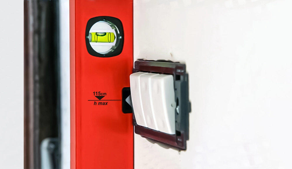 - 115 cm-es jelölés az elektromos aljzatokhoz, amelyek bútorok közelében helyezkednek el.