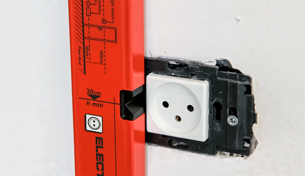 - 30 cm-es jelölés a padlótól az elektromos aljzatokhoz.