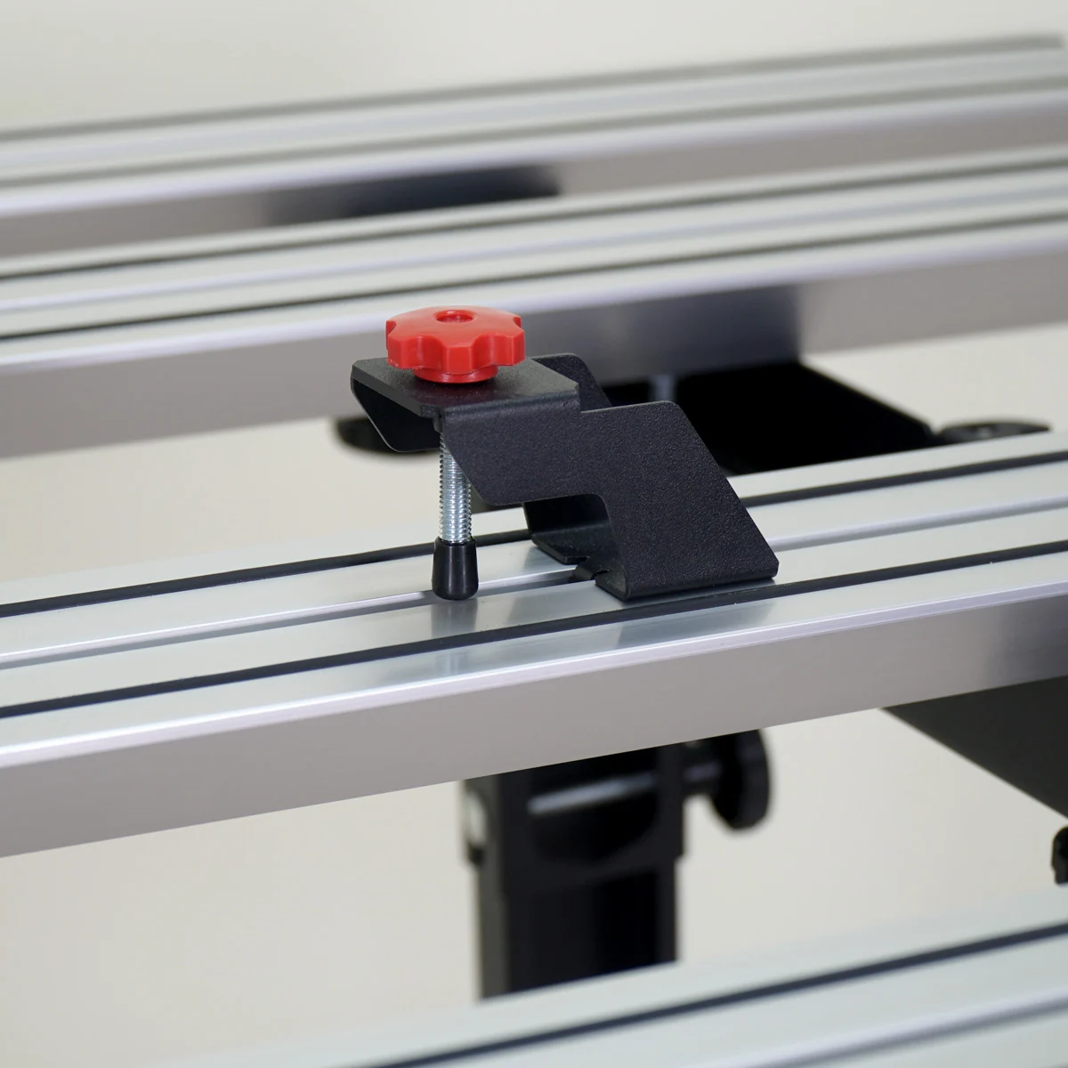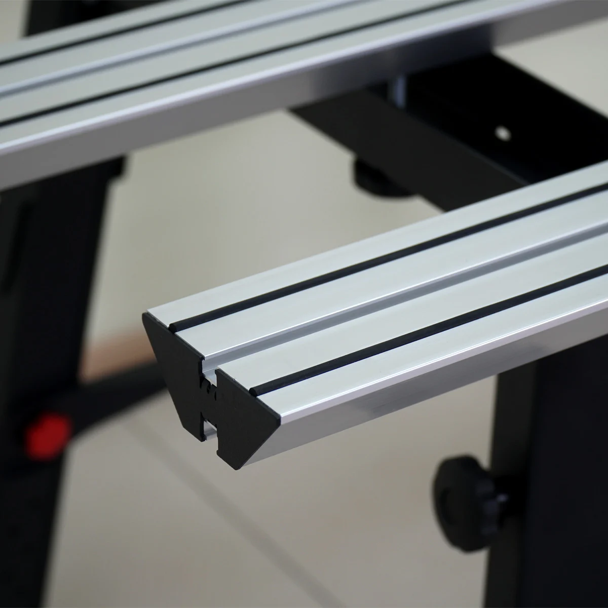 Az asztal megerősített alumínium profilja 100 mm szélességben, gumibetétekkel garantálja a vibrációmentes munkát. Mostantól nem szükséges külön rögzíteni a burkolólapokat. A keresztlécek lehetővé teszik bármilyen sík anyagból készült polc elhelyezését az eszközök tárolására. Az asztalon megtalálhatók UShM rögzítő konzolok és mágneses tárcsák tartói.