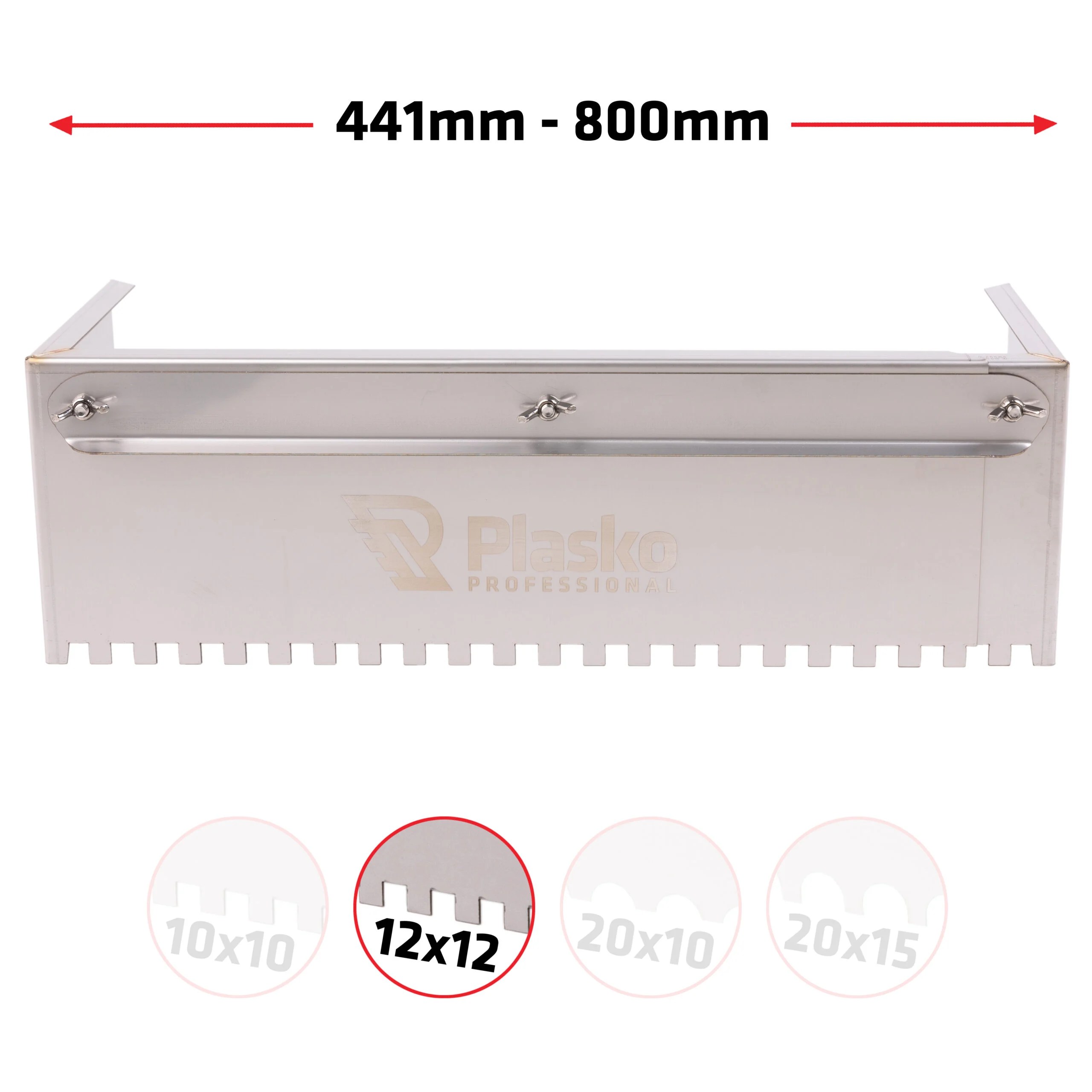 Állítható szélességű fogazott lehúzó a ragasztó egyenletes, gyors és tiszta felhordásához 344mm-től 600mm-ig