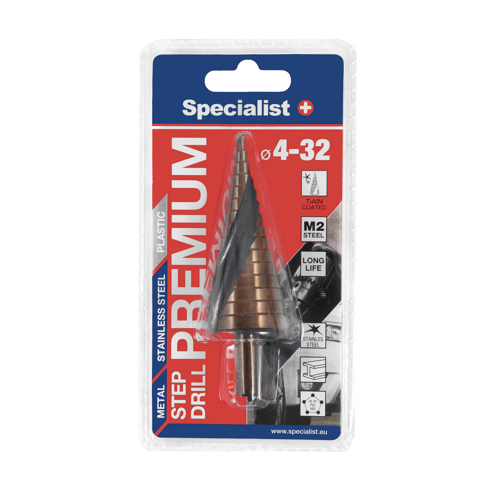Fedezze fel a Specialist+ Lépcsős Fúró, ⌀4-32 páratlan előnyeit, amelyet a minőség, tartósság és hatékonyság jegyében terveztek. Ez a fúró a professzionális és hobbi barkácsolók nélkülözhetetlen eszköze, amely minden igényét kielégíti.